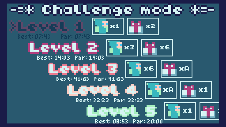 the game is now almost finished. i've most recently added and playtested the Challenge and Developer modes. Challenge mode unlocks after beating the game normally (up to and including credits), and al...