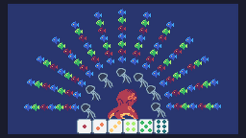 shooting down enemies causes dice rolls, and you can use those dice rolls to create powerups.